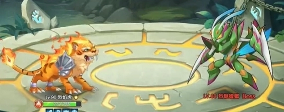 4、最后派出配备“战意Ⅱ”与“聚气”的烈焰虎,待伤害加成效果叠加至满层后,施展“闪焰獠牙Ⅲ”并衔接绝技将敌人击败。