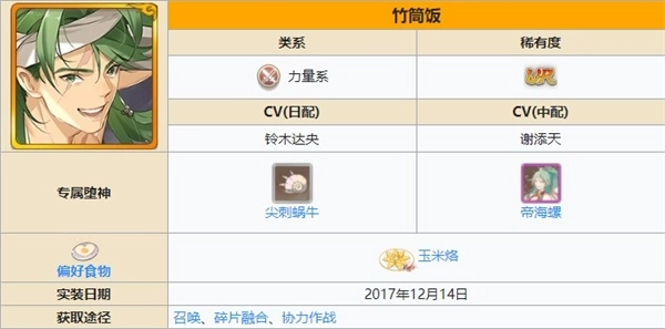 评价:两次立绘调整都让这位悲情竹筒饭颜值下跌,大热天裹这么厚看着都替他热(要是想了解还有哪些角色被调整过立绘,不妨逛逛本站的食之契约专区)。他血量厚实却有点“拖后腿”属性,不过输出相当给力——尤其打肉盾时,毕竟自带减防效果,而且培养成本低、上手容易,绝对是萌新的贴心伙伴。