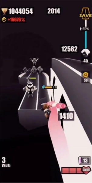 1、战斗、闯关,别停下你的脚步:传统跑酷?不!你也可以把我们叫做动作游戏!碰到敌人?攻击它!极致的打击感和操作感才是我们想传递的体验!这个世界里没有什么是不能打破的~没有什么能阻挡你的脚步!暴力美学,打造出超乎想象的游戏快感!多种场景风格,带来完全不一样的游戏体验。