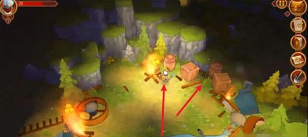 3、游戏开局时玩家会获得一把铲子,每张地图都有数量固定的宝箱,它们被藏在各种隐蔽的位置。当玩家靠近宝箱时,右侧UI的铲子图标会闪烁,提示此处下方有可挖掘的宝箱。地图中的树木和石头都能通过攻击获取材料,而宝箱通常会被这些树木或石头遮挡。