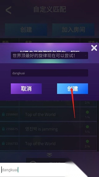 2、联机方法有两种,其一为点击“创建”,以此创建一个房间。