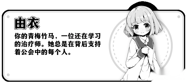 你的青梅竹马,目前还是一名在学习阶段的治疗师。她总是默默在背后支持着公会里的每一个人。