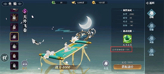 元宝商城-天外飞卷坐骑(击杀怪物经验+10%)