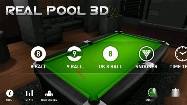 打开真实台球3D游戏手机版,等游戏加载完成后,就能看到游戏的主界面,接着根据自己的喜好挑选一个台球模式就行。
