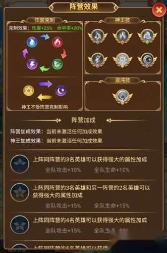 英雄之间存在阵营效果,涵盖克制与加成,玩家能够依据阵营效果来搭配英雄阵容。