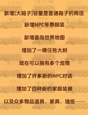 新添加了大箱子、NPC的冬季服装、姜岛的世界地图以及一棵用于任务的大树等内容。