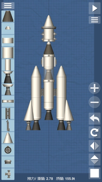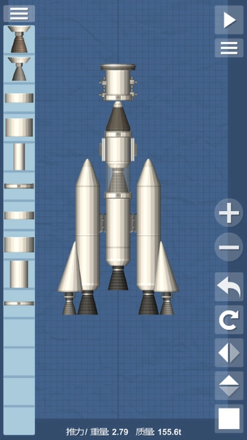 3、进入创造界面后,第一步先制作一个中等尺寸的燃料箱,接着在它的下方放置一个分离器,同时记得要把控制室和降落伞也加上。