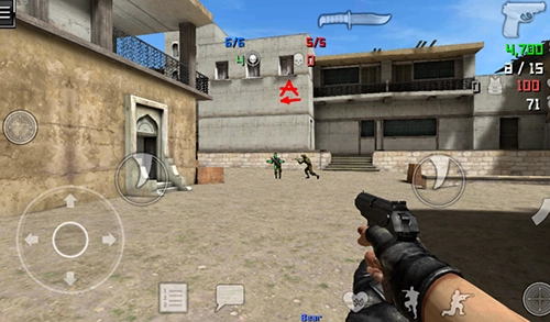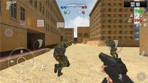 3、进入游戏后,操作十分简单:左侧负责方向控制、下蹲、购买等功能,右侧则对应攻击操作。不过实际上左右两侧都能进行攻击,大家可以根据自己的操作习惯自由选择;