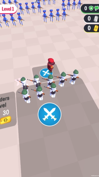 岛屿征服是一款策略闯关游戏。玩家需要收集资源建造营地、召唤军团,以此攻击敌方军团;同时收集敌军被击杀后掉落的资源,并用这些资源解锁己方营地的更多区域、召唤更多士兵,进而获取更大优势。待将敌方全部歼灭并成功占领敌人基地后,即可获胜并进入下一阶段的挑战!