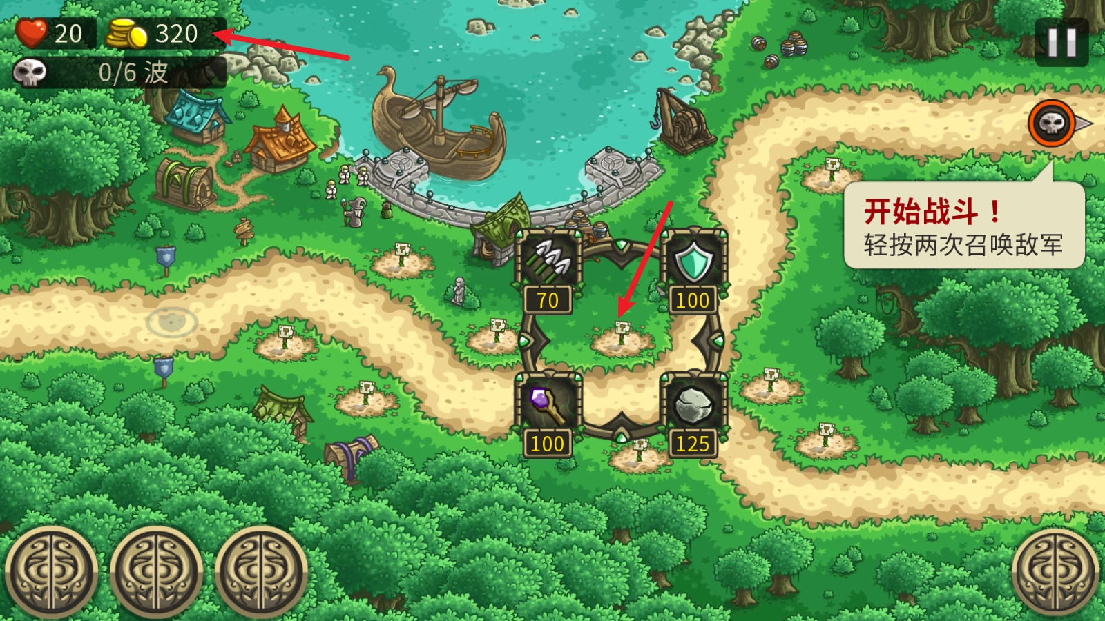 在游戏里,只要选中空着的地方就能建造防御塔,左上角会显示当前的金币数量,只有拥有足够的金币时,才能够进行召唤操作哦。
