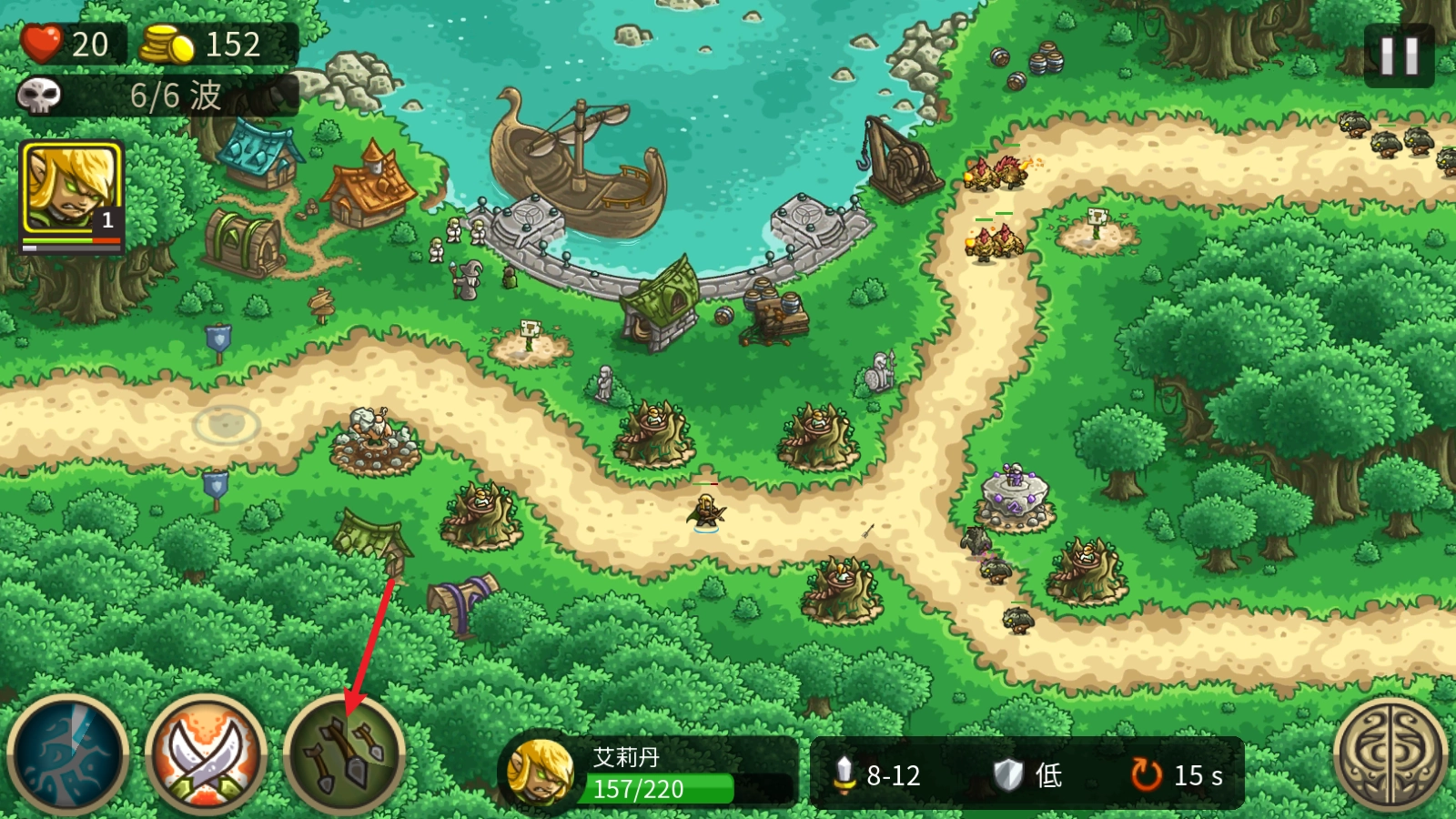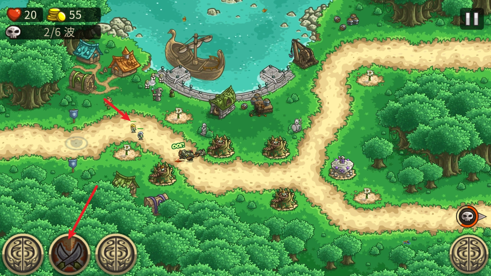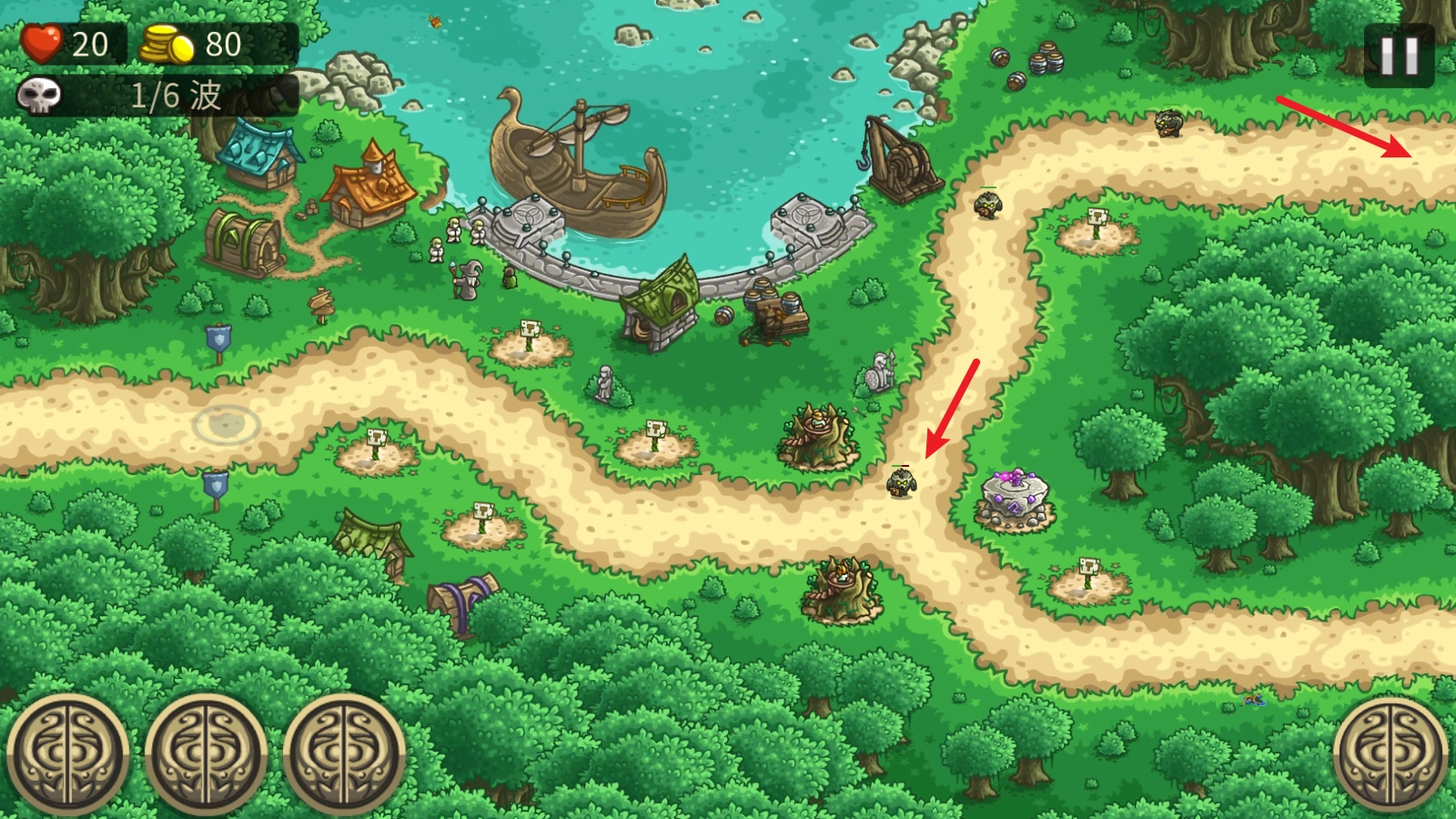 4、防御设施搭建完成后,点击右上角的出兵按钮两次就能召唤敌人,敌人靠近防御塔时便会遭到攻击。