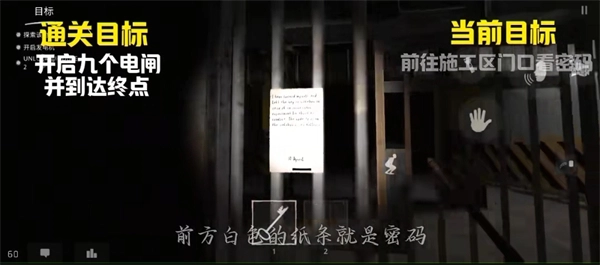20、前往左侧施工区域查看密码纸条,纸条上的时间倒置后就是密码(例如11月23日,对应的密码为2311)