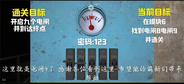 26、回到模块6所在区域,通过左右转动避开木板,然后打开电闸(密码为125)