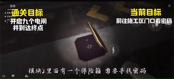 19、听到“叮”的提示音后,就可以前往中央区域领取钥匙了,另外模块2里面还有一个保险箱,需要输入密码才能打开。