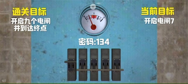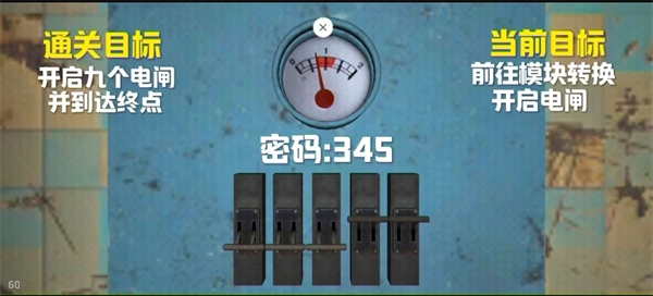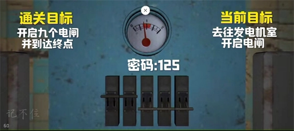 9、向右转进入房间,按照指示将指针推到中间位置就能打开电闸(密码是125)