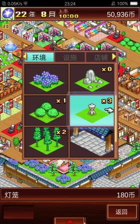 9、商店:原本的人气值是6,经过测试后上升到了42,添加两株梅花后达到88,添加四株梅花则为101。