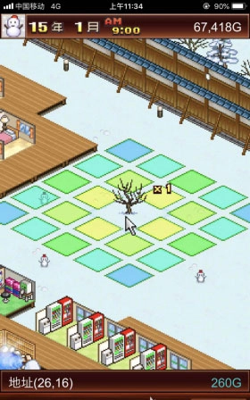 2、自动售货机:原本的人气值是4,经过测试后变为29,添加两株梅花后人气值上升到67,添加四株梅花时人气值达到75。