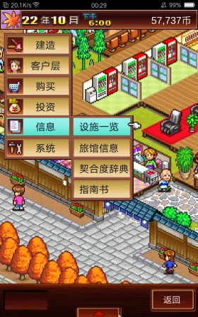 6、建筑之间的搭配直接关系到契合度,所以掌握相性系统十分关键。可以通过“信息”菜单里的“契合度词典”来了解相关内容,不同的建筑组合会产生增益或者减益的效果。像客房旁边就不适合放置噪音比较大的设施(比如游艺机、歌厅),不然会使人气值下降,进而影响入住率。