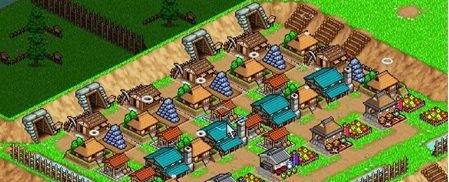 这个布局每月最少能带来6000金币的收入,不过还有优化的余地,比如矿工数量和矿场数量不匹配,现有的产能很难满足六家店铺的需求。