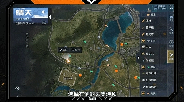 直接打开地图界面,点击右侧的【采集】,地图上就会出现各类资源位置的标注,按照需求进行采集即可。