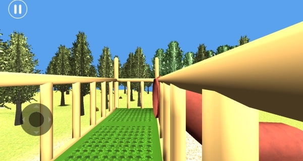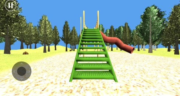 2、拖动虚拟摇杆,操控角色移动至滑梯附近,仔细观察它是否存在异常情况。