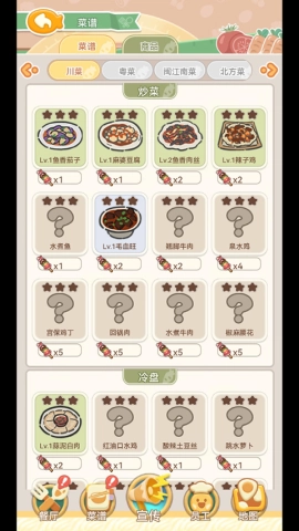 1、游戏内提供数百种食谱等待玩家探索开发,不同顾客有着多样的口味偏好,玩家需要持续推出全新菜品来满足他们。