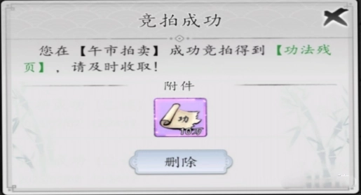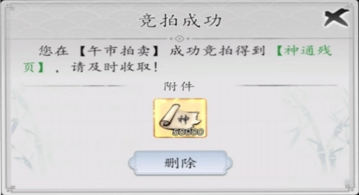 功法残页在升级灵技与绝技时的需求量较大,若仙人轴和神灵卷储备充足,建议以5.6万左右的价格竞拍;要是价格偏低,也可拍下留存备用。