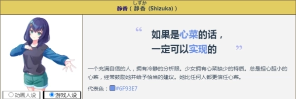 静香其实是心菜个性的具象化体现,在心菜经历了多次试镜失败后,出现在了她的眼前。