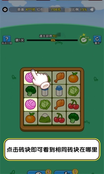 这是一款比较简单的三消游戏,闯过第一关能获得0.1元红包,通过第二关则可领取0.15元红包。