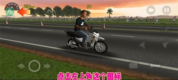 点击左上角的图标,这里藏着一个解锁特技的功能。点击开启后回到游戏,摩托车启动行驶时,左侧就会出现六个特技技能!