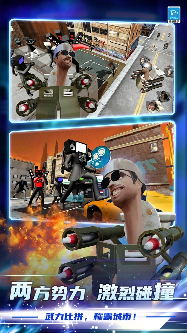 《马桶人乱斗》是一款极具特色的魔性对战冒险射击游戏,它将刺激的玩法与吸引人的故事情节巧妙融合。游戏的背景设定在一个满是奇幻元素的世界里,其中有两个核心角色——马桶人和监控人,他们正进行着激烈的对决。