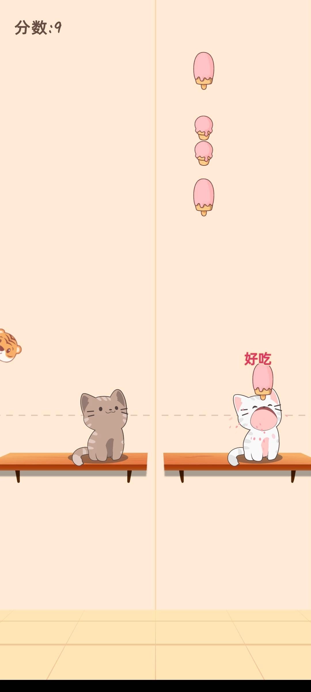 3、操控小猫咪接取食物,一旦遗漏游戏就结束。