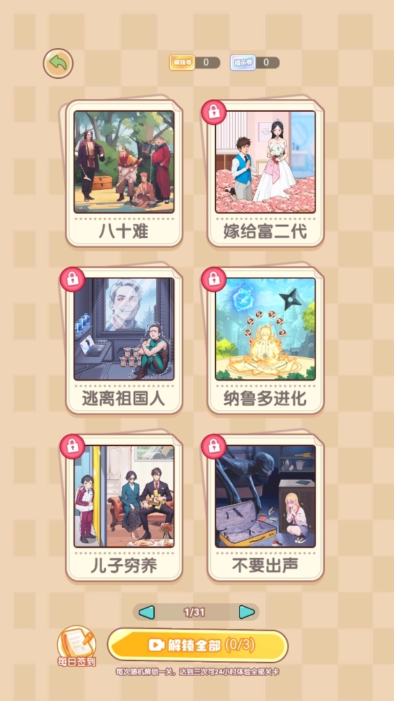 2.进入游戏后,你会发现有大量关卡可供选择,你可以挑选自己喜欢的关卡进行挑战,不过部分关卡需要先解锁才能游玩。
