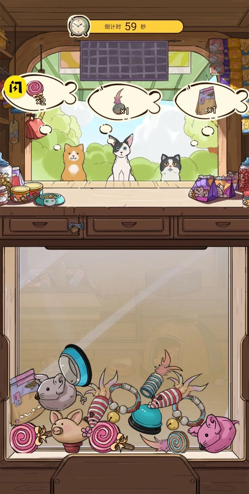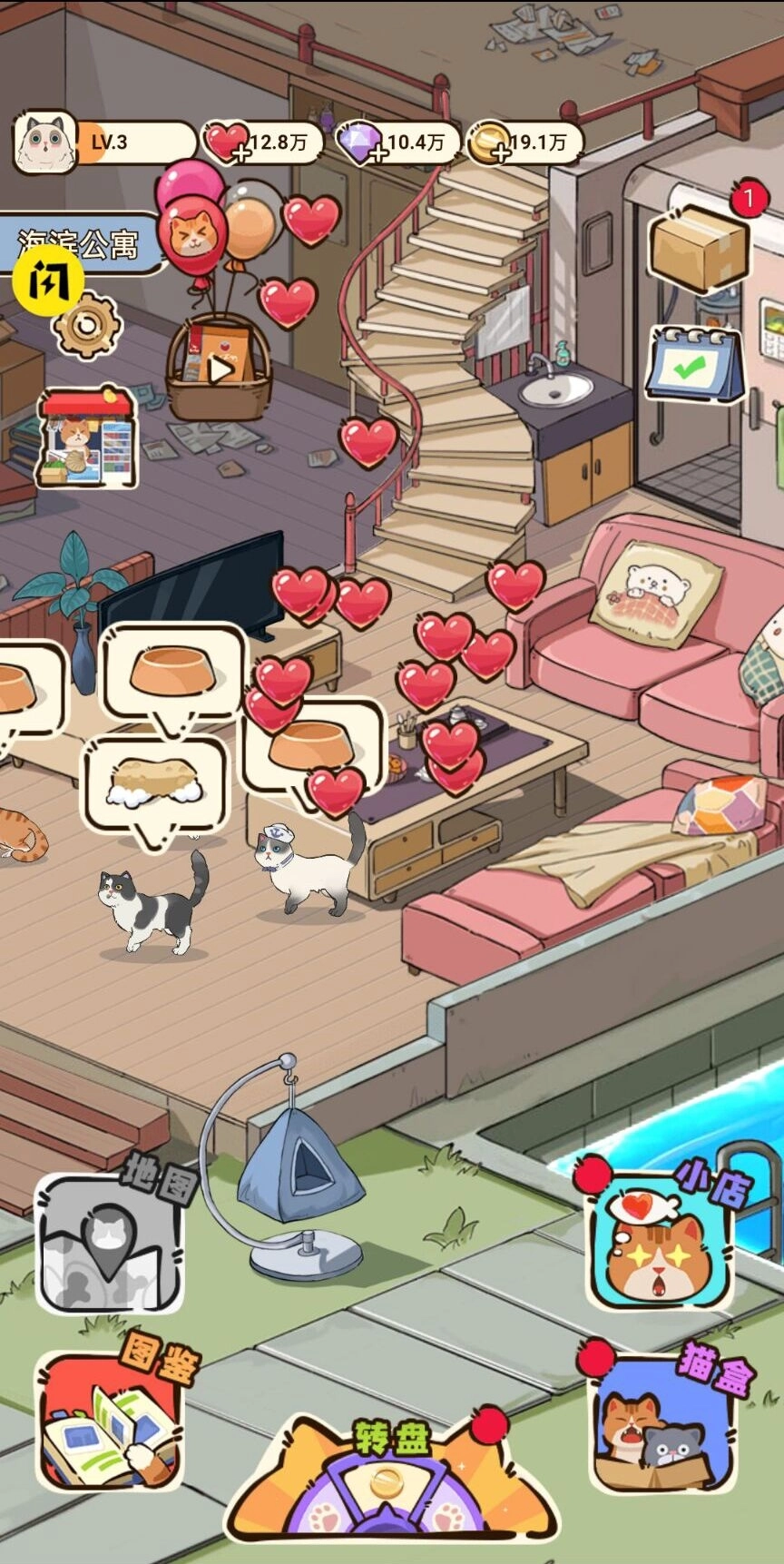 2.融入模拟经营玩法,你不仅要留意猫咪的情绪状态,还得兼顾它们的饥饿程度与日常照料。