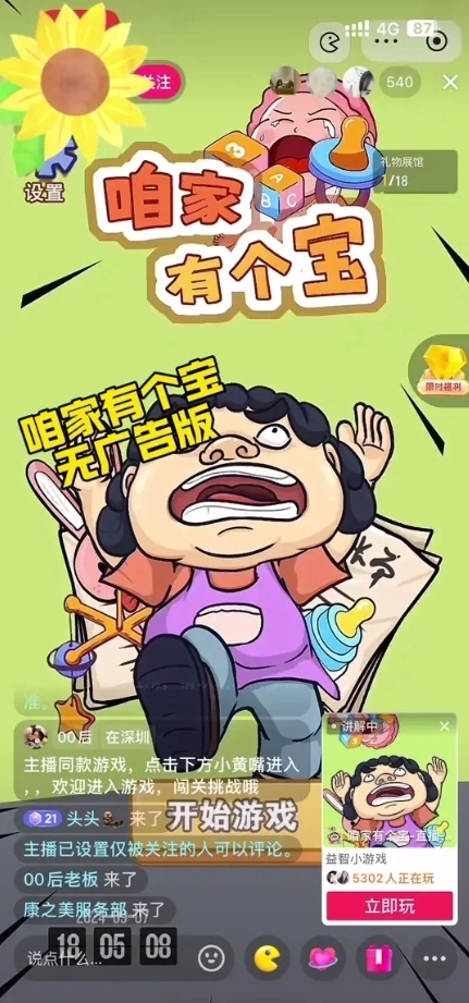 咱家有个宝小游戏开启众多精心设计的剧情关卡,带你踏上烧脑之旅。每个关卡都有不同主题背景和剧情内容,让你绞尽脑汁爆笑闯关,趣味十足。游戏里还有形象的卡通角色设定,精彩内容也会持续更新新增,期待你的绝佳表现哦!