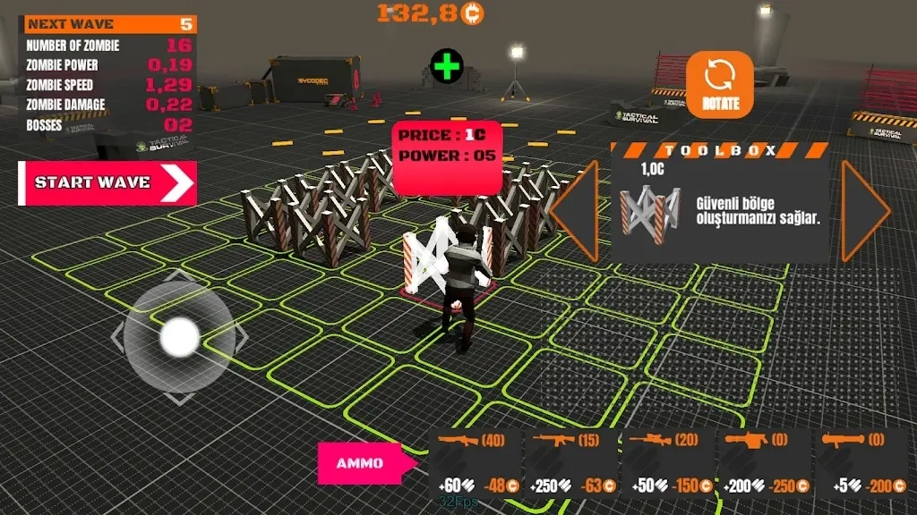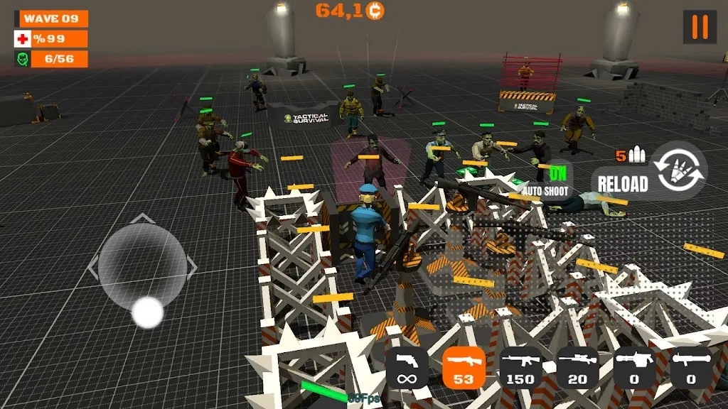 战术生存是一款十分有趣的策略生存类游戏。在游戏里,你会遭遇僵尸一波接一波地侵袭你的领地。每一轮攻击结束后,你能够重建领地,为下一波攻势做好准备——利用安全栅栏构筑安全区域,扩充军备力量,争取拿到最高分数并在世界排行榜上崭露头角。赶紧来制定专属于你的策略,在僵尸浪潮中尽可能长久地生存下去吧!