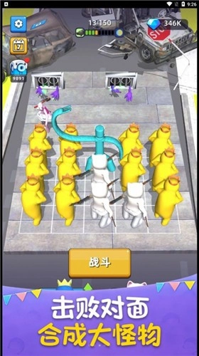 3、把相同颜色的士兵合成出大怪物,击败强大的对手;