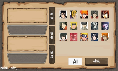 3、进入选角界面后,先选择三个角色组建自己的队伍,接着挑选三个对手。与此同时,玩家还需选取三个不同的密卷和通灵道具。这一过程需要谨慎决策,因为密卷与角色的搭配蕴含着重要的战略考量,而把握好用替身的时机同样关键。