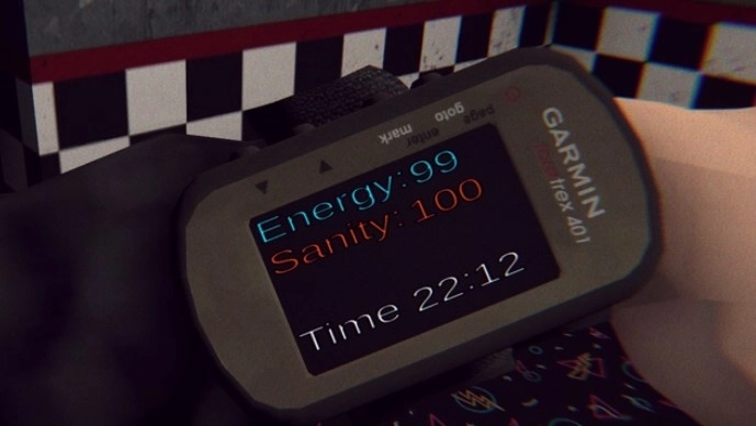 1、手表显示的内容有三项:一是电量,需注意关门、查看监控、使用手电筒等操作都会消耗电量;二是san值,当san值归零时人物会陷入疯狂状态;三是时间。