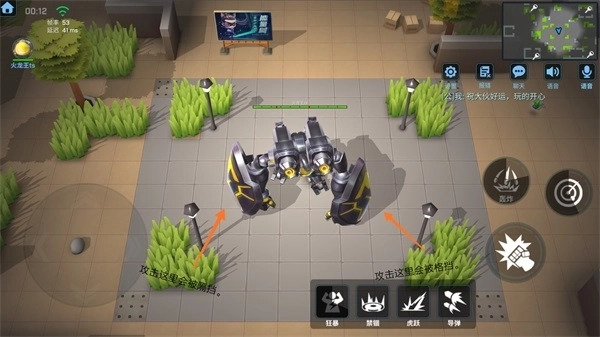 【特别提醒】需要注意的是,boss的两只手掌上各有一块能用于格挡的大铁片。如果你的攻击打在这铁片上,不仅无法对boss造成伤害,反而会被格挡掉伤害。不过这种情况通常只在使用火箭筒和冲锋枪时出现,迫击炮则不会有此问题。