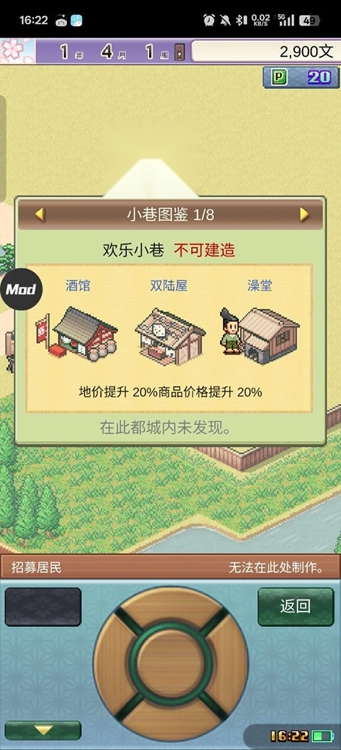 定期为居民轮换职业,解锁阴阳师、棋手等高阶职业,通过触发专属事件来加快古都的发展进程。