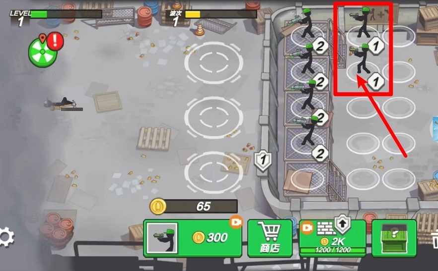 1.招募士兵需消耗金币:点击绿色按钮,花费金币生成火柴人士兵,该士兵将占据战场的空位。