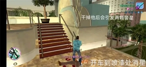 第一个任务是先解决冈萨雷斯并抵达粉点,解决他后会触发两颗警星,此时需下楼驾车前往喷漆点。喷漆点的位置要记牢,中后期会用到,具体有大洋沙滩、罪恶角、小海地和罪城港各一个。喷完漆即可,但要注意别在警星闪烁时再犯事,不然警星会再次亮起。