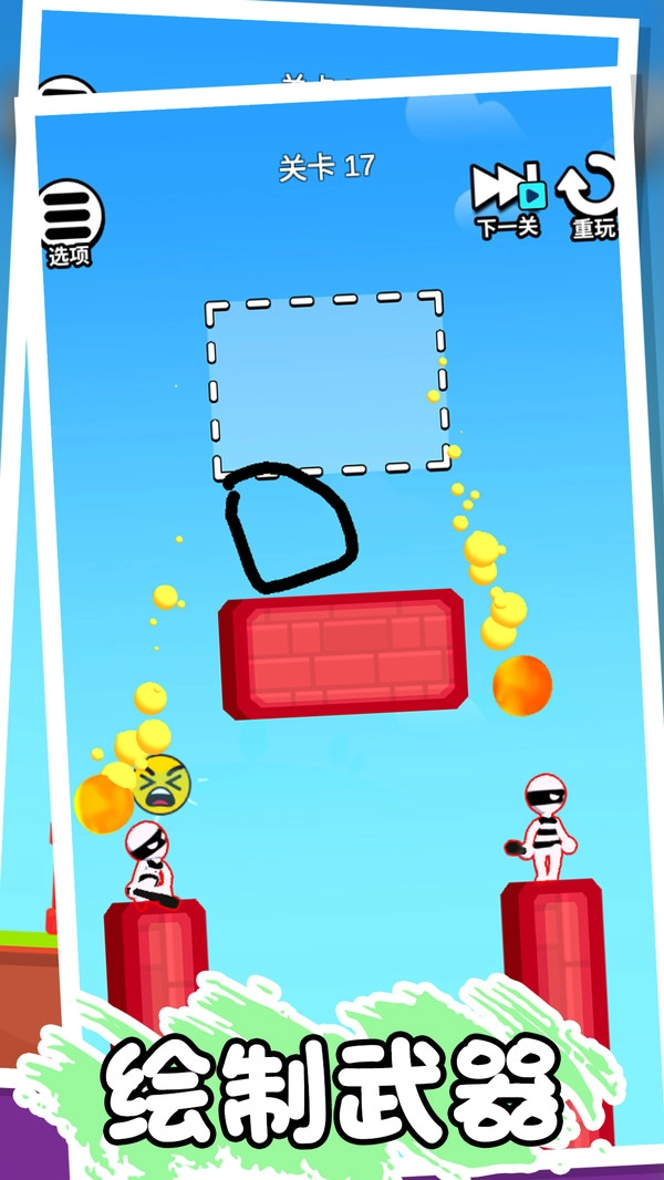 1、你的核心任务是绘制出合适的武器,从而把所有敌人都驱逐出关卡。