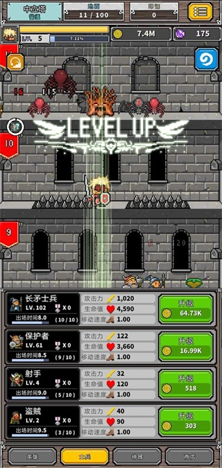 4、当拥有充足的资源时,还能对英雄进行升级操作,每次升级都能提升它们的属性值。