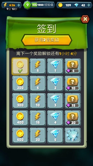 每日完成签到任务,能够获取金币、能量、钻石以及骰子碎片(该碎片可用于骰子的进化或合成操作,大约每20天可以兑换一次抽奖所需的能量块)。