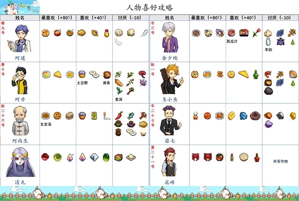 奶牛镇的小时光国际服最新版本人物喜好