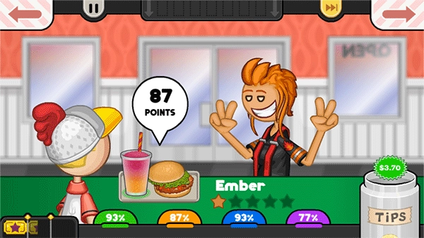 9、完成餐点制作后,将餐点递送给顾客,顾客会对餐点进行评分,评分越高,你获得的金币奖励就越多。