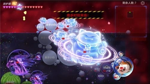 2、在接近边界时,可以试着朝墙壁的方向吐球,这样能达成合球的效果。但要留意的是,这种方法有一定风险,因为体积较大的球可能会趁机对你进行“壁咚”式攻击,把你一口吃掉。