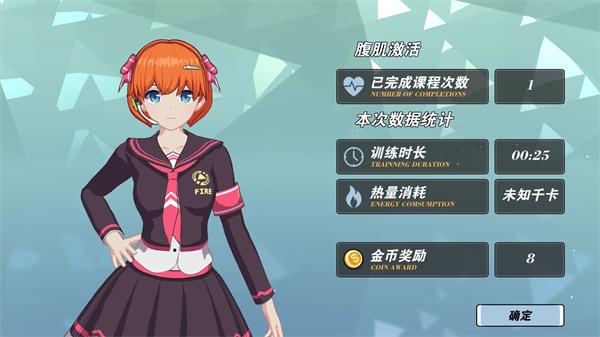 7、单次训练结束后会生成可视化报告,涵盖训练时长、消耗的卡路里、动作完成率、核心肌群激活度等多个维度,同时会奖励相应的金币,这些金币可用于课程拓展。